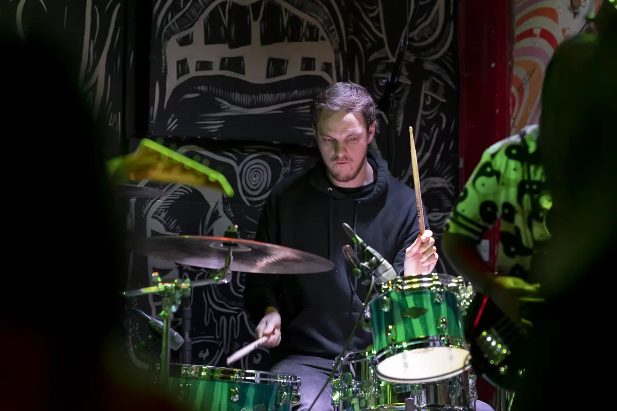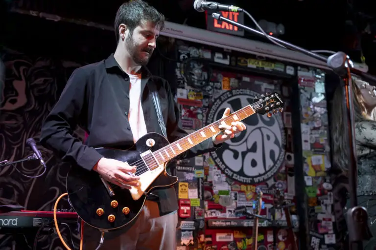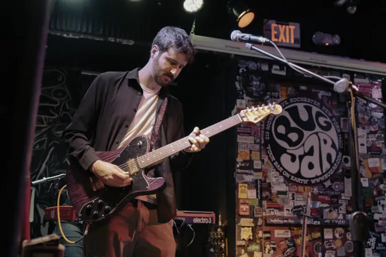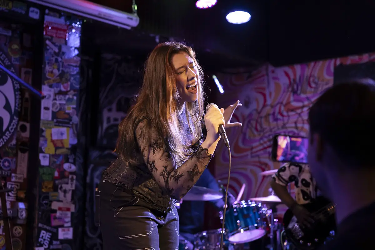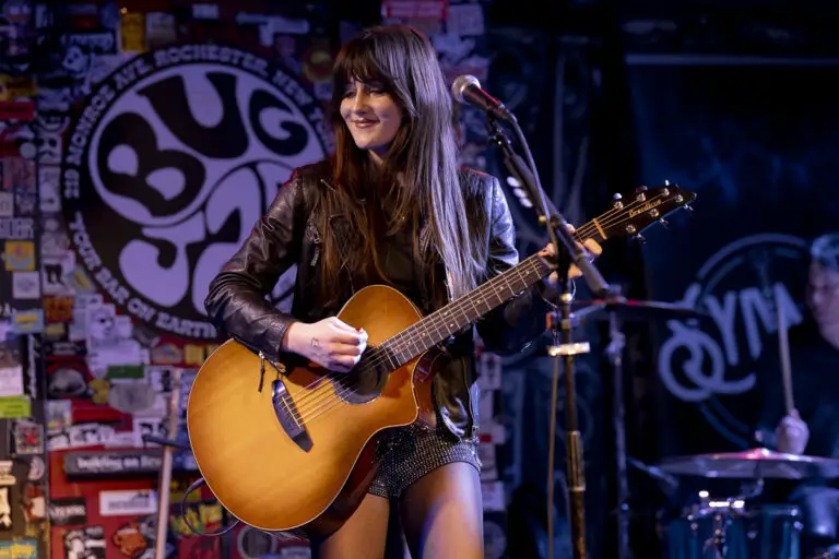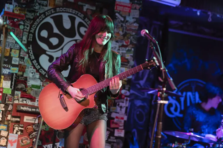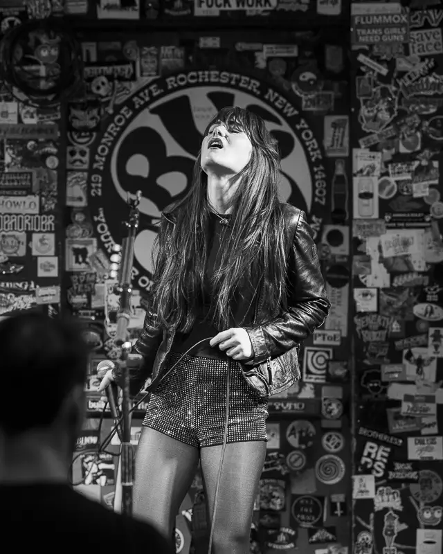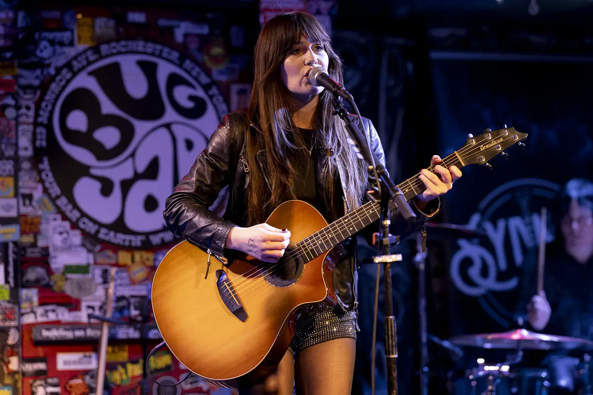 Boundless energy followed when Sydney Irving skipped in front of the onlookers in her black leather jacket and sequined short shorts. The set started with an aggressive beat from Rochester drummer Brian Eberts, which led the precocious pop songstress to ask, “What Have You Done?” as her opening number. Fresh off a new record deal to finish 2025 on a high note, it’s clear that Irving knows what she is doing.