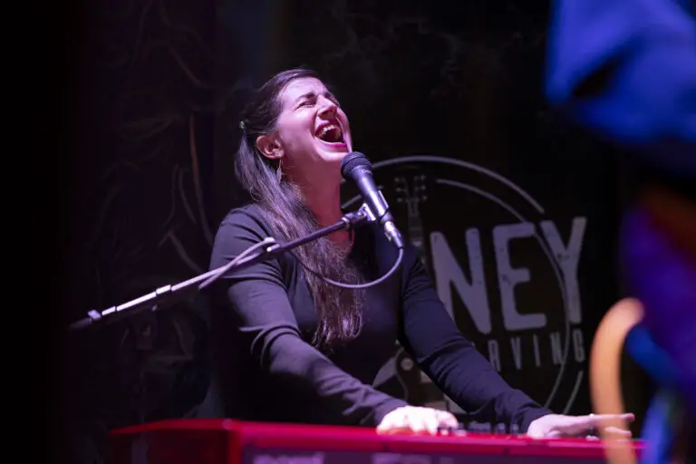 Sensing that her guitarist and the rest of her band could use a break, Sydney shuffled them off into the crowd so she could strap on her acoustic guitar – front and center, solo-style. All alone, she delivered a stirring rendition of her emotional love song, “All I Need Is You,” to the captive audience. Irving then injected some of her goofball humor as she struggled with the funny tunings of her own version of the oft-covered Joni Mitchell classic, “Big Yellow Taxi.”