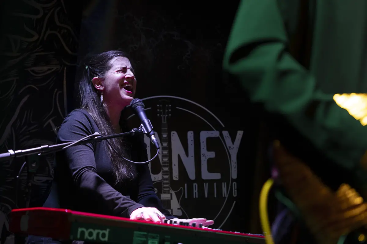 Veteran singer/songwriter and keyboardist Ashley Cox from Syracuse, who won a SAMMY in 1997 for Best New Artist, lends enthusiasm and a steadying presence to the youthful Irving, the winner of the same award 25 years later. On this night, Cox, a longtime headliner in the Syracuse music scene, was pushed to the back of the stage to make room for the rest of the band but came to the forefront when her vocal harmonies co-mingled with Irving to create a full girl power rocker dynamic on “Wish That I Knew.” Cox deserves renewed focus on her past accomplishments; she serves as a perfect mentor and counterbalance as Irving navigates her nascent career.