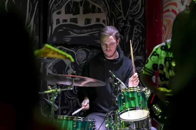 Sydney Irving held court at her merch table in the bar area as the night got started, ready and willing to chat with anyone willing to peruse her wares. Her welcoming attitude set the tone for her concert to come later in the night. But first, The Turbulents came to warm the crowd’s spirits on this cold January evening. An Upstate NY-based pop-rock band formed in 2021, The Turbulents current line-up consists of Devon Platzer (Vocals), Kyle Cushman (Vocals/Guitar), Dan Litavsky (Drums/percussion), and Sanaa Finley (Bass).