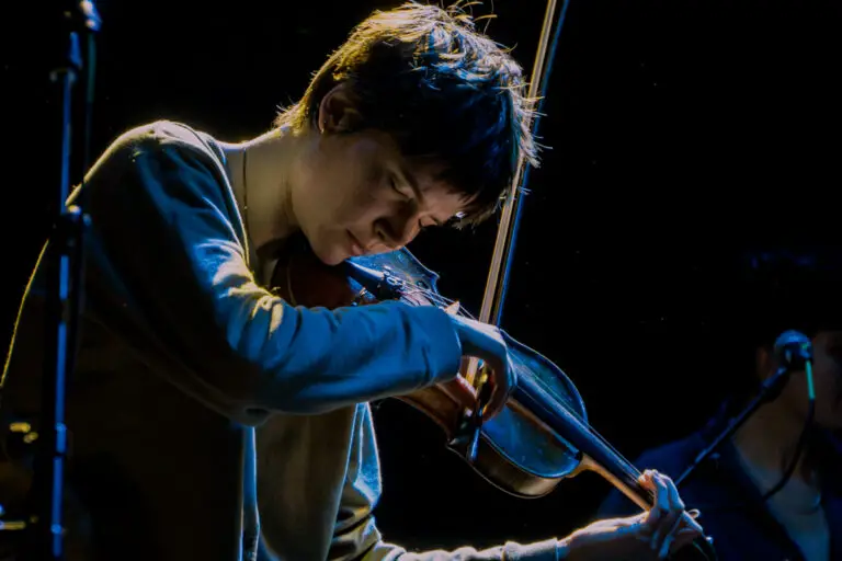 It can be genuinely hard to tell which instrument is making which sound; as with DuBose’s vocals, they appear to sacrifice the individual to elevate the whole. During “Emily” it takes me several bars to notice that the melody is plucked out not by some prerecorded synthesizer but by the violinist standing in front of my eyes.
