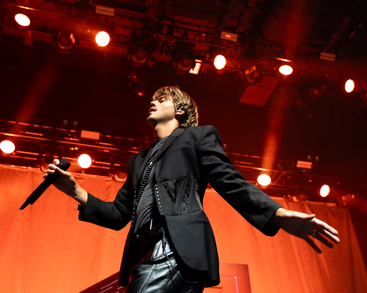 When the lights dimmed, fans were instantly immersed into Ruel’s world. A heavy synth and strobing sensation pulled all eyes to center stage, where a red door stood shut. As the beat ascended to its climax, the door opened to reveal a silhouetted Ruel singing the first lyrics of album-opener “Only Ever.” Sprinkling in songs from his early EPs, front-row fans were reciting the lyrics to “Dazed & Confused” and “Younger” directly back to the Aussie singer. Having grown from their teens to young adulthood listening to Ruel’s deeply relatable lyrics about growing up, the crowd reminisced over the music that made them fans to begin with.