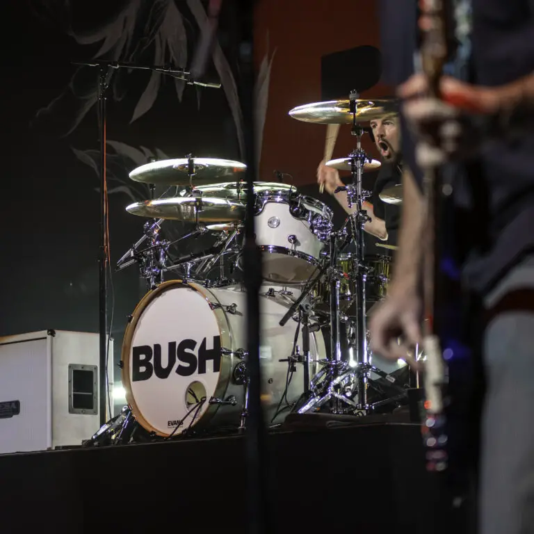 Saturday, February 21 at Del Lago Resort and Casino’s musical venue, The Vine, was packed tight with the promise of seeing Bush, the 90’s British born, rock and grunge heroes before they kick off a European tour. You could feel the anticipation in the crowd while the stage was prepared for the concert, and the crowd looked on, wanting to see the world-famous band, some not for the first time, and others finally getting the chance to live that dream.