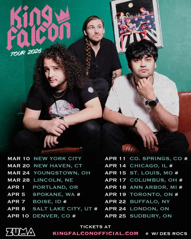 This spring, King Falcon hit the road across North America, including a hometown show at Mercury Lounge on March 10 and a run of dates supporting fellow NYC rocker Des Rocs. For a band already praised as one of the city’s most exciting indie-rock exports, “Holding Out” feels like another step toward bigger stages.