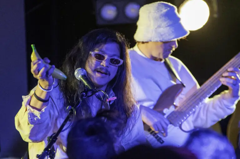 Opening for Wednesday night on the tour was Moondough, a soulful, self-proclaimed, bedroom jazz style, with a hint of some funk thrown in there too. Led by Ken Raymundo, the band took the stage at The Song and Dance with ‘80s-style sunglasses and a fuzzy bucket hat, but that wasn’t the peak to their funkiness. Starting the show with their hit “Intrusive Thoughts” and taking it up a notch with every jammy, soul fueled melody they played, their set continued with “OMW” and ended with a bang via “Vibes” that had the entire venue feeling just that. Leading to a little meet and greet in the lobby with some of the nicest musicians in the industry, the band shared the setlist written off a piece of cardboard box.