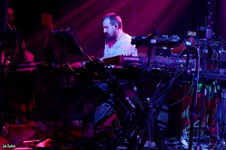 An ambitious composition filled with dynamic twists, the piece has long served as one of Spafford’s most adventurous vehicles. Sunday’s version reached extraordinary heights. Midway through the song came a dramatic pause reminiscent of “Divided Sky,” yielding a prolonged moment of absolute silence that brought the entire barn to its knees before the band slowly rebuilt the groove. Watching Moss and Gordon lock onto a new riff and develop it in real time was nothing short of mesmerizing. Smiles spread across the stage as the jam grew deeper, stranger, and more cosmic. Twenty minutes in, the audience knew they were witnessing something special before the band threw in a little curveball. Out of the swirling improvisation emerged the unmistakable melody of “Mad World,” the haunting classic by Tears for Fears famously revived in the film Donnie Darko. Spafford flipped the tune into an upbeat groove, stretching it just long enough before seamlessly sliding back into the second half of “Dirtbath,” completing a nearly 35-minute improvisational sandwich that left jaws somewhere near the floorboards.
