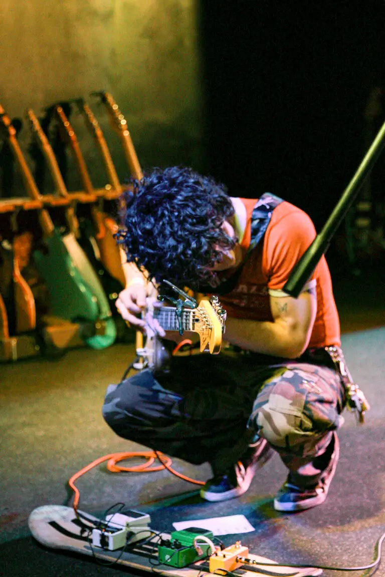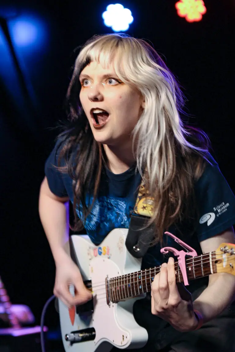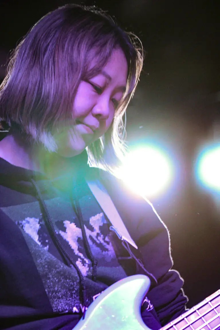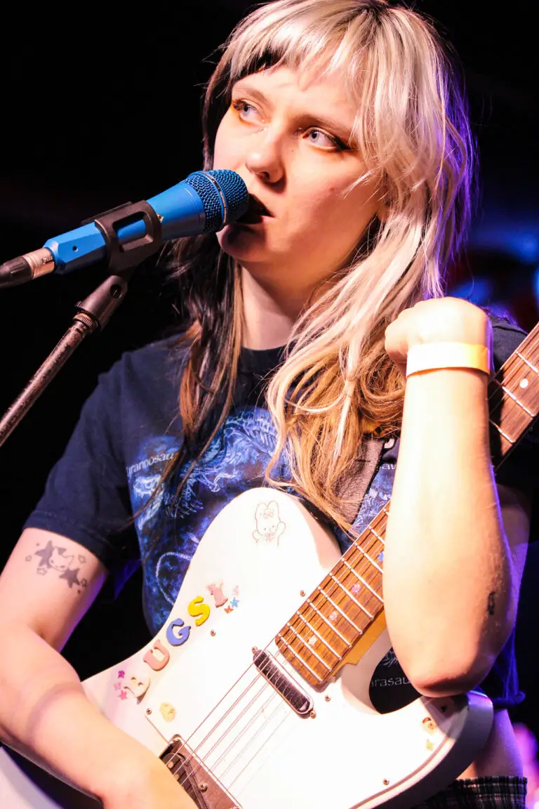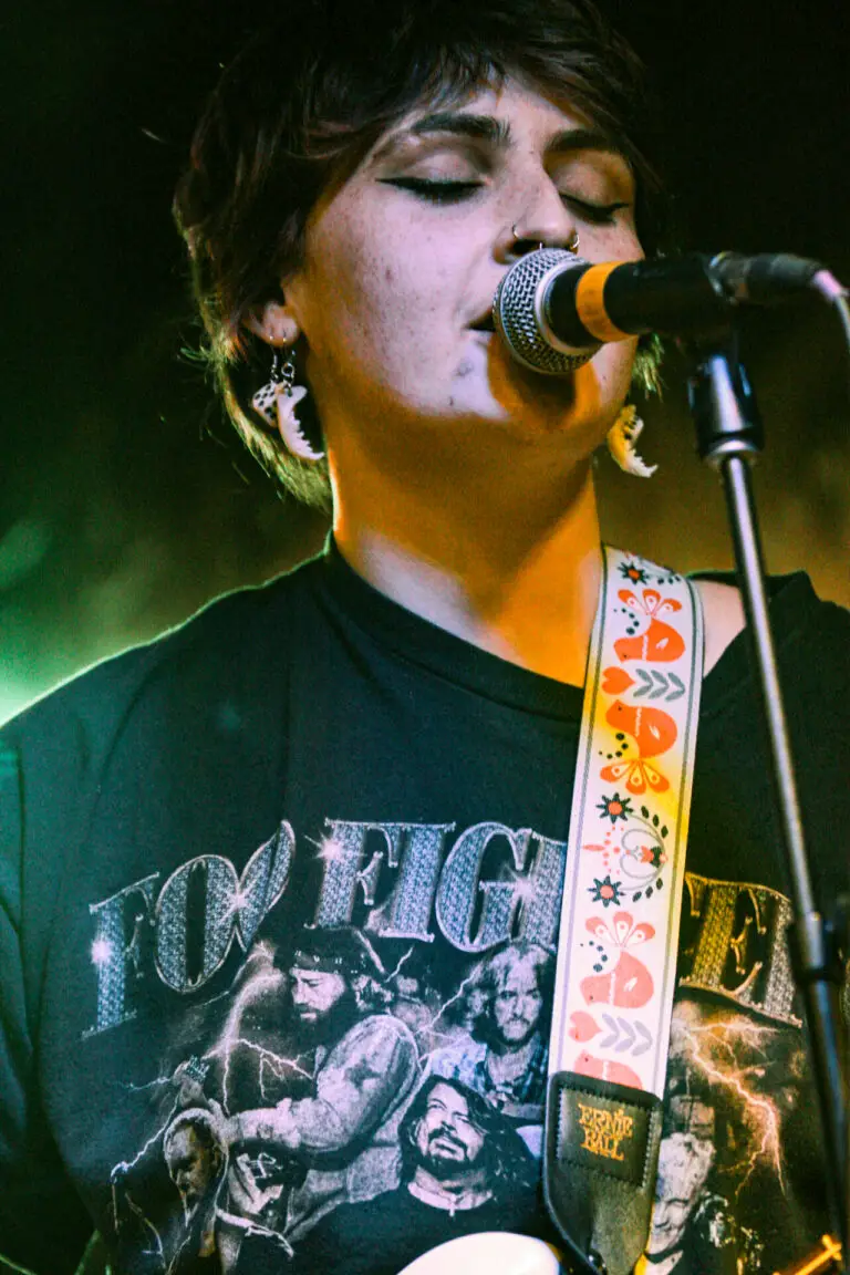 Opener Bugsy from Minneapolis opened first with a catalog of originals that were indie-pop expressing emotional themes. The intro to their song ‘hard to breath’ singer Emily Schoonover made a statement to the audience, “Lesbians in the crowd this one is for you” earning cheers around the venue. They also had at their merch stand resources for people to know their rights against ICE and support their communities.