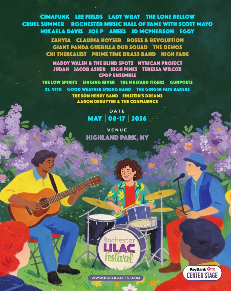 Opening weekend leans into groove and soul, with Cimafunk kicking things off May 8 and soul veteran Lee Fields following May 9. Americana takes the spotlight May 10 with The Lone Bellow, while Rochester native Mikaela Davis celebrates an album release May 13. The festival closes with blues-infused rock from JD McPherson on May 16 before Eggy wraps the event up. For more information on the full performance schedule, visit roclilacfest.com. Additional details and package information are available at roclilacfest.com/music. In addition to live performances, the festival has launched an official Spotify playlist highlighting this year’s artists.