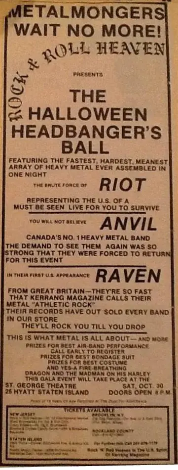 On that 1982 tour, when you came over and did the Halloween Headbangers Ball, you also did a bunch of shows around New York and New Jersey with Anvil, right?