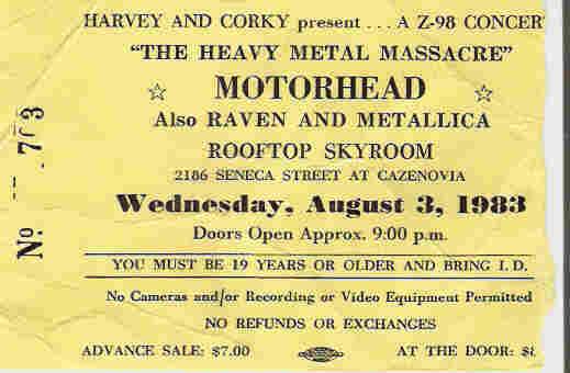 There’s another show in New York state from that tour that I wanted to ask you about. It’s kind of another legendary triple bill. You guys played in Buffalo, New York [August 3, 1983 at the Rooftop Skyroom in Cazenovia], on the Kill Em All for One tour, Motörhead headlining, you guys in the middle slot, Metallica opening. Amazing triple bill. What do you remember about that show?