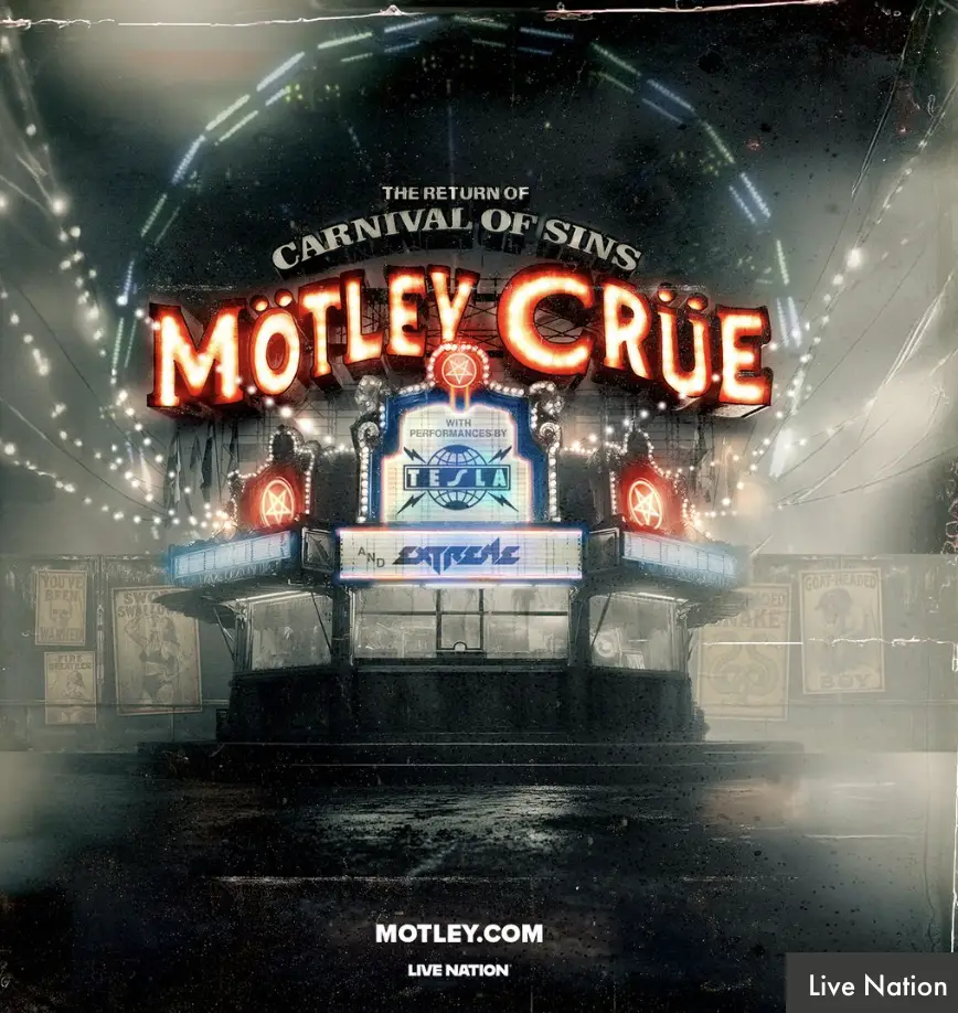 Mötley Crüe has sold over 100 million albums worldwide, been nominated for 3 Grammys, and is known for their iconic live performances. Mötley Crüe will perform on Wednesday, July 29th at 6:30 pm as a part of “The Return of Carnival of Sin” tour with performances by Tesla & Extreme.