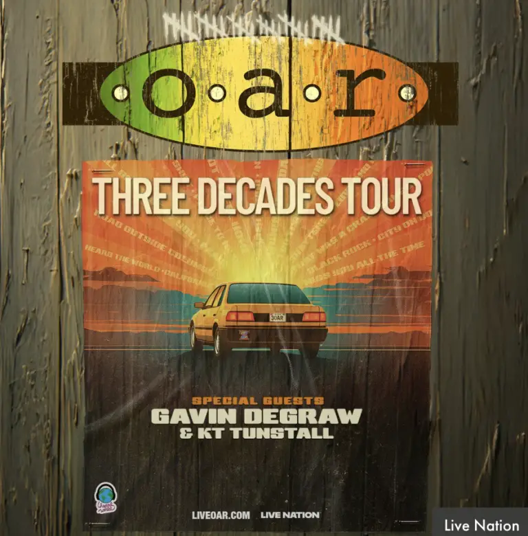 O.A.R, also known as Of A Revolution, an American rock band, will perform at SPAC on Saturday, September 19th at 7:00pm with special guests Gavin DeGraw and KT Tunstall. The O.A.R. band features Marc Roberge, Chris Culos, Richard On, Benji Gersham, and Jerry DePizzo.