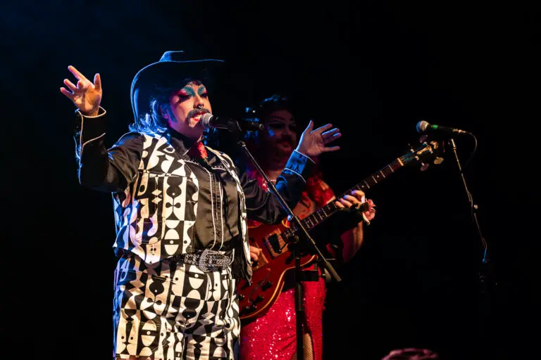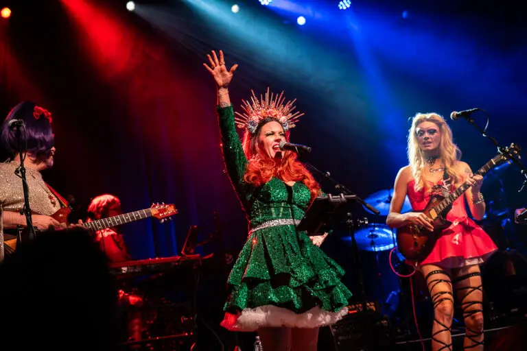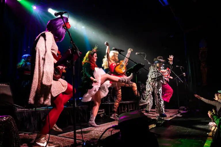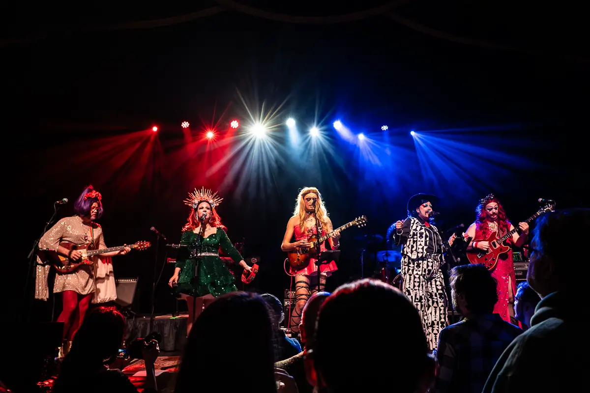 Formed in 2023 as a direct response to Tennessee’s drag ban, Bertha: Grateful Drag has quickly built a reputation as one of the most talked-about acts on the road. In a sea of Grateful Dead cover bands, Bertha distinguishes itself not only through its concept but through its musicianship. The seven-piece ensemble, whose members all go by the name “Bertha”, faithfully captures the Dead’s sound while also expanding on it. At the forefront are two lead vocalists whose powerful, expressive voices bring new life to the classic material. The result is a seamless fusion of counterculture and camp.