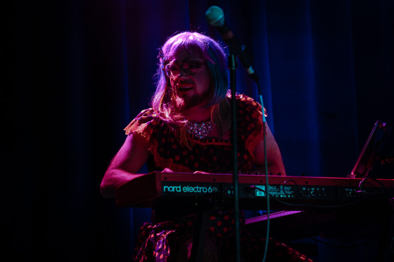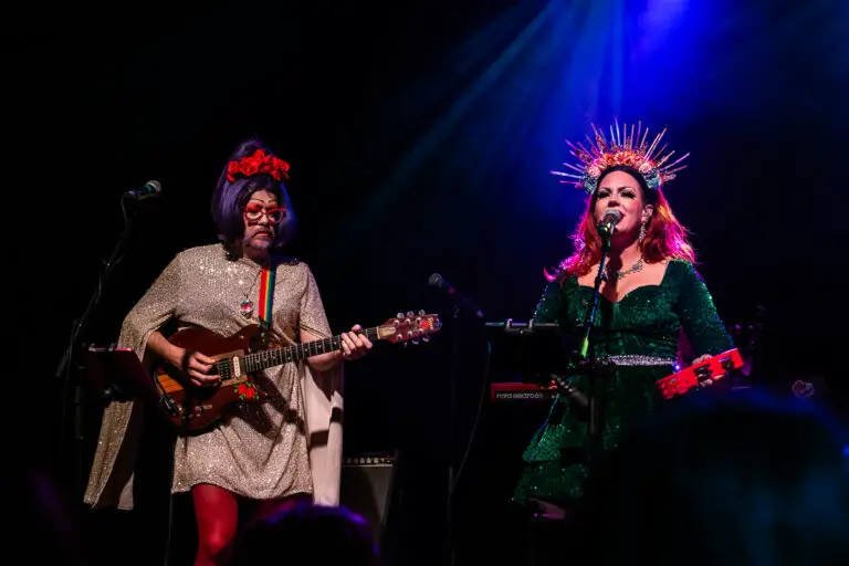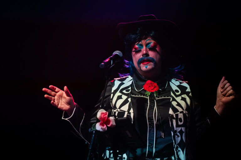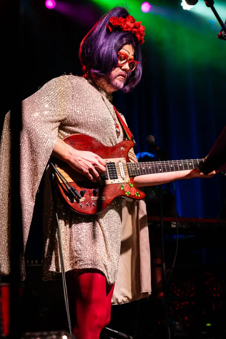 During the set break, Radio Kingston host and Queerly Inc volunteer, Jami Smith, addressed the audience to highlight the band’s commitment to supporting local LGBTQ+ initiatives. Queerly Inc, based in Woodstock, works to foster an inclusive and empowering environment for the community and also organizes Woodstock’s annual Pride celebration. A portion of proceeds from each Bertha show is donated to organizations like Queerly Inc, even more reinforcing the band’s initial mission. The intermission also featured a performance by Hudson Valley drag artist Mirella, who delivered a crowd-pleasing routine to Cher’s “If I Could Turn Back Time.” Audience members stepped forward to tip their cash in classic drag fashion.