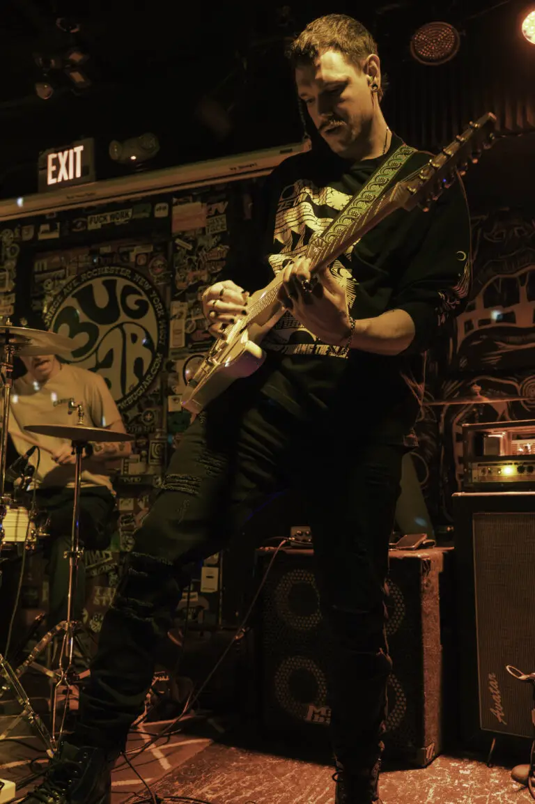 With a quick transition MakeItStop, another local Rochester band, was already taking the stage to keep the energy going and to ride off the crowd reaction to Number 3. Coming off the release of their album “Pale Runs The Ghost” in November of 2025 MakeItStop was rocked, locked and loaded with heavy tracks with deep roots. Immediately the early 2000’s nostalgia kicked in, sounding like a hardcore band you would have heard back in the day, and to hit this home, MakeItStop even threw in a cover of “Eriakarka,” originally by The Mars Volta. They made it their own while holding true to the original, an excellent addition to their set of entrancing melodies and blasting vocals that are sure to get your adrenaline going.
